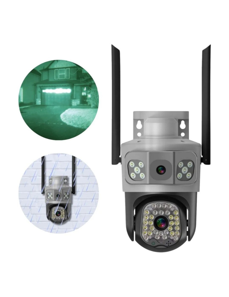 Câmera de Segurança WiFi Externa, Full HD 3MP, Dupla Lente, IP66 à Prova D'água, Rotação 360°