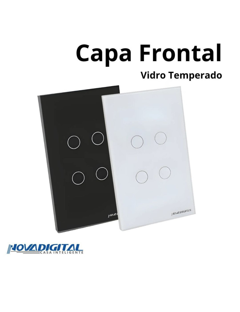 Capa Espelho Frontal Interruptor Touch 4 Botões Branco e Preto Nova Digital