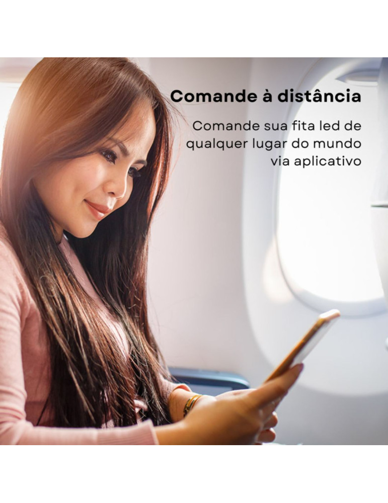Esse kit de fita led inteligente vai com 2 rolos cada um com 5 metros, totalizando 10 metros no mesmo kit, ligue e desligue, troque a cor e monitore a ativação via app, por voz na Alexa ou manualmente no controlador da fita.