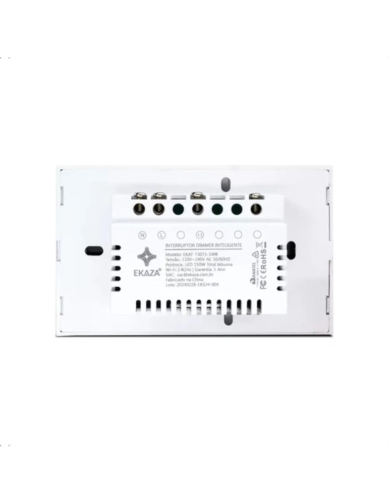 Interruptor Inteligente Touch Dimmer Wi-Fi 1 Canal Ekaza Branco - 4x2