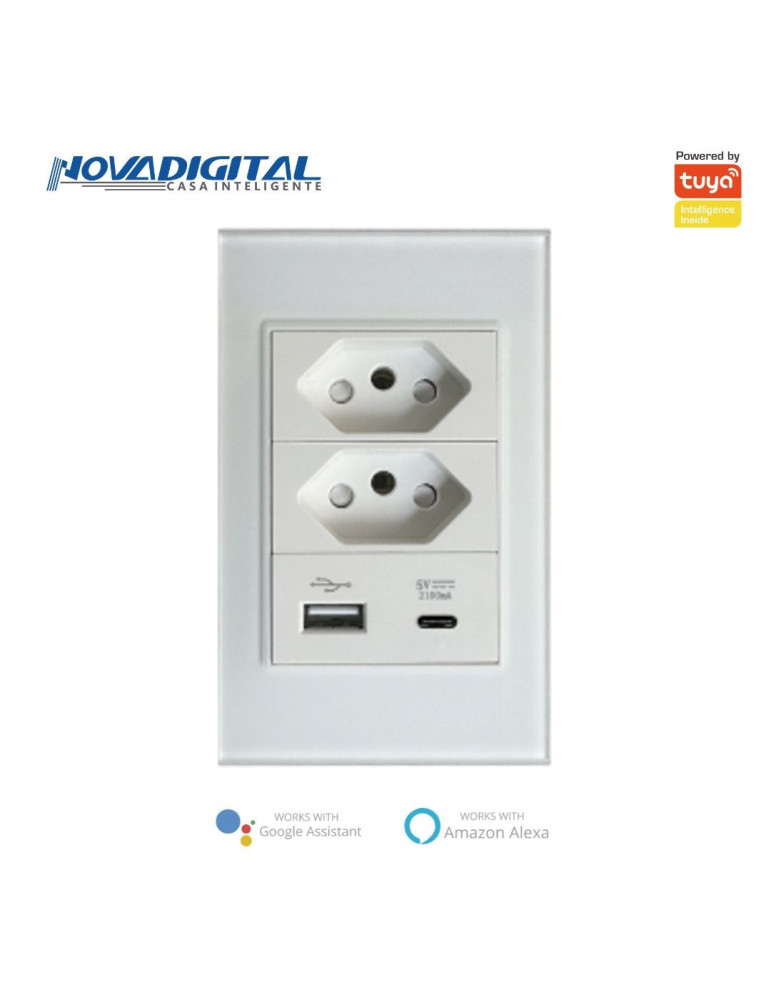Essa tomada tem o mesmo acabamento dos outros produtos da linha Novadigital, para que você mantenha o padrão da sua casa e deixar tudo mais moderno e sofisticado. Agora com 2 tomadas e entradas USB e USB-C em um só dispositivo.