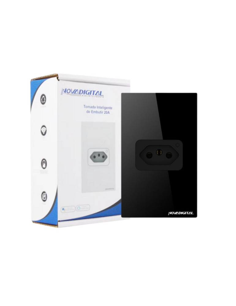 Tomada Inteligente de Embutir 20A Wi-fi Preto/Branco Nova Digital 4x2